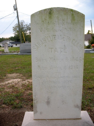 Grave of Mrs. Sarah Elizabeth Clark Tate, wife of